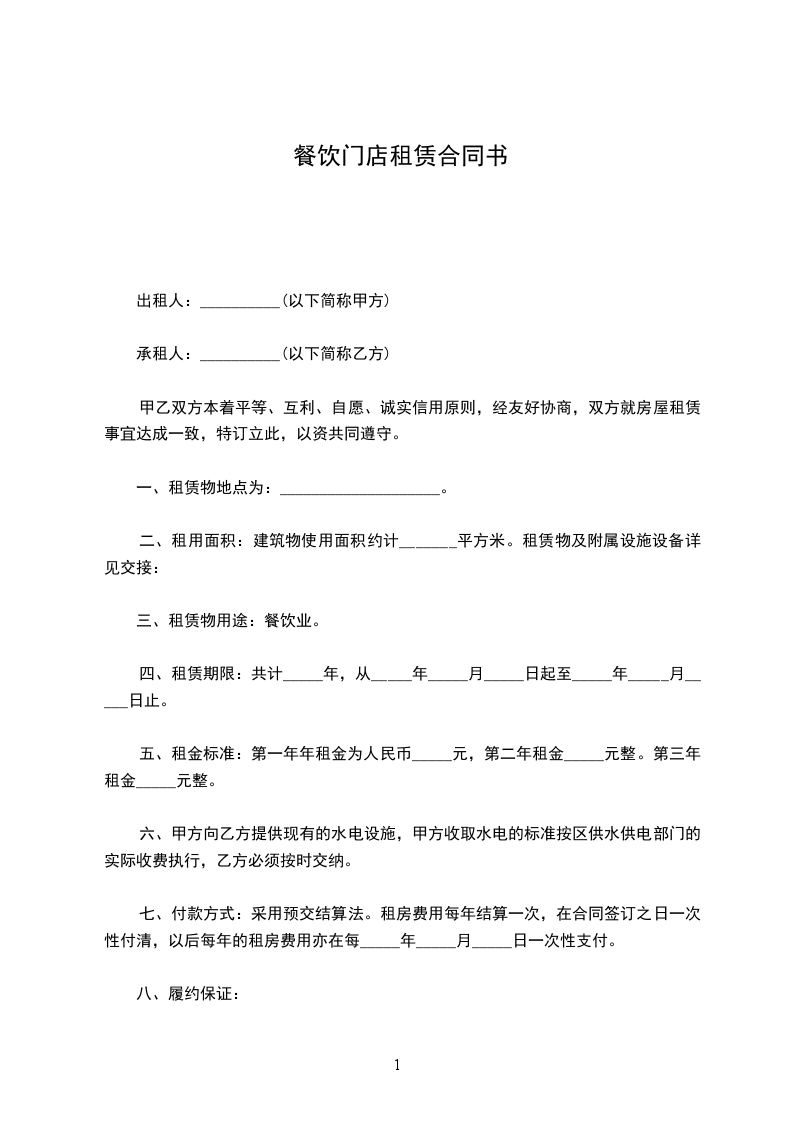 五、租金标准:第一年年租金为人民币_____元,第二年租金_____元整。第三年租金_____元整。