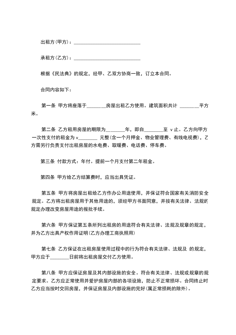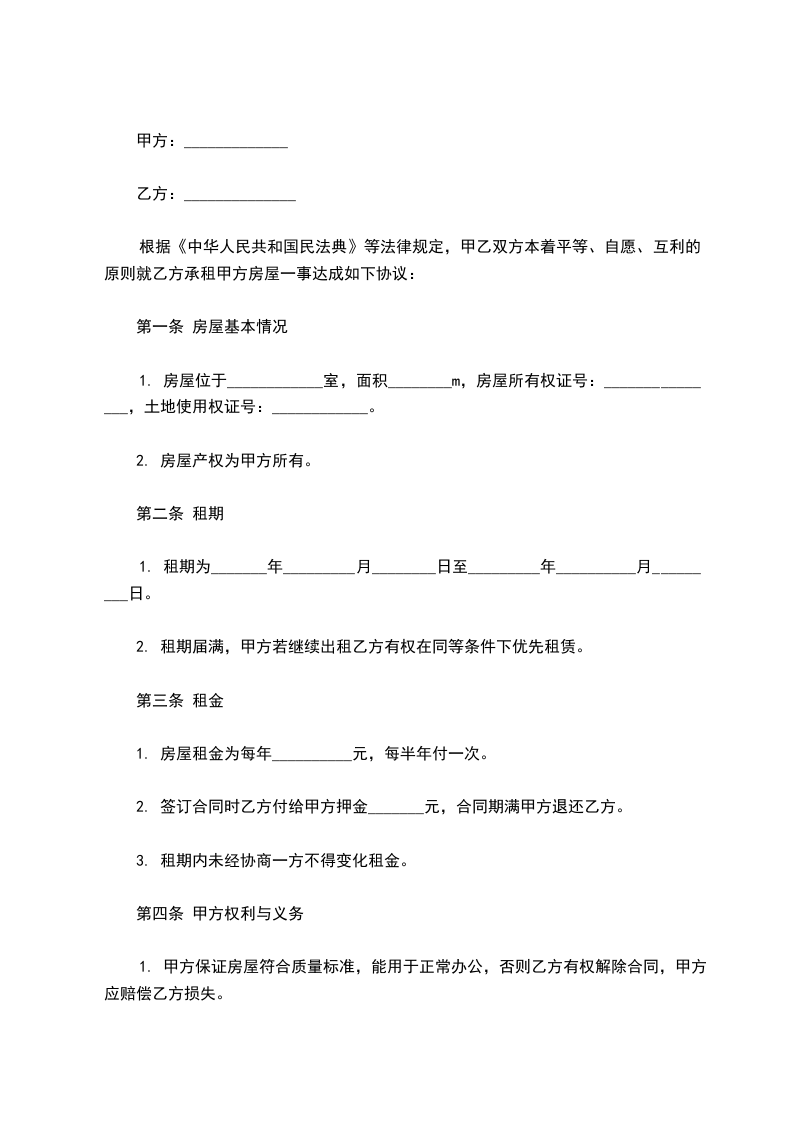 根据《中华人民共和国民法典》、《中华人民共和国城市房地产管理法》及其他有关法律、法规之规定,在平等、自愿、协商一致的基础上,甲乙双方就下列房屋的租赁达成如下协议: