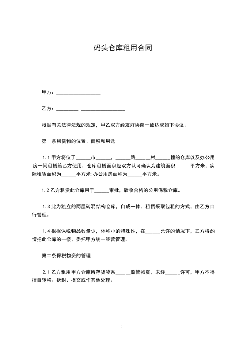 1.3此为独立的两层砖混结构仓库,自成一体。租赁采取包租的方式,由乙方自行管理。