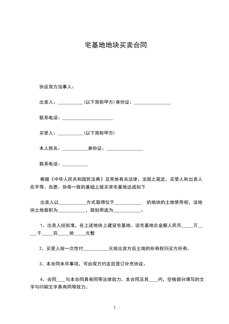 根据《中华人民共和国民法典》及其他有关法律、法规之规定,买受人和出卖人在平等、自愿、协商一致的基础上就买卖宅基地达成如下