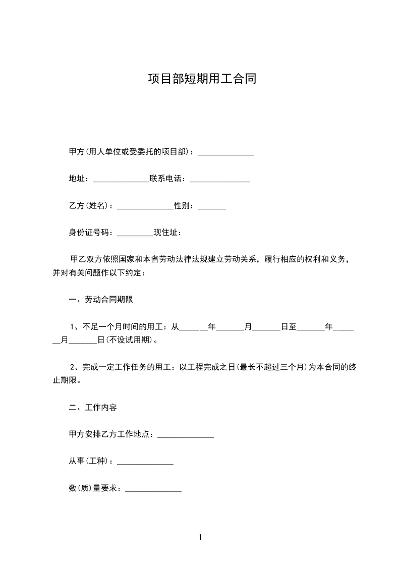 1、不足一个月时间的用工:从_______年_______月_______日至_______年_______月_______日(不设试用期)。