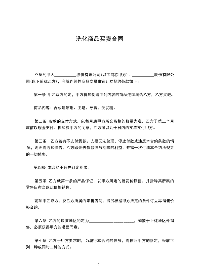 3、如有产品价格变动,甲方应在改变价格和折扣的30天前书面通知乙方,所有改变价格期限之前双方签定的合同一律保证价格,并按正常交货期交货。