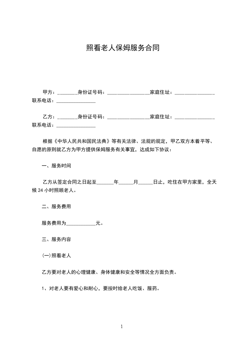 1、家政服务包括:照顾老人的起居生活(包括日常护理、洗衣、洗澡、安全监护等)、做饭、打扫卫生、确保甲方男女主人不在家时的安全。