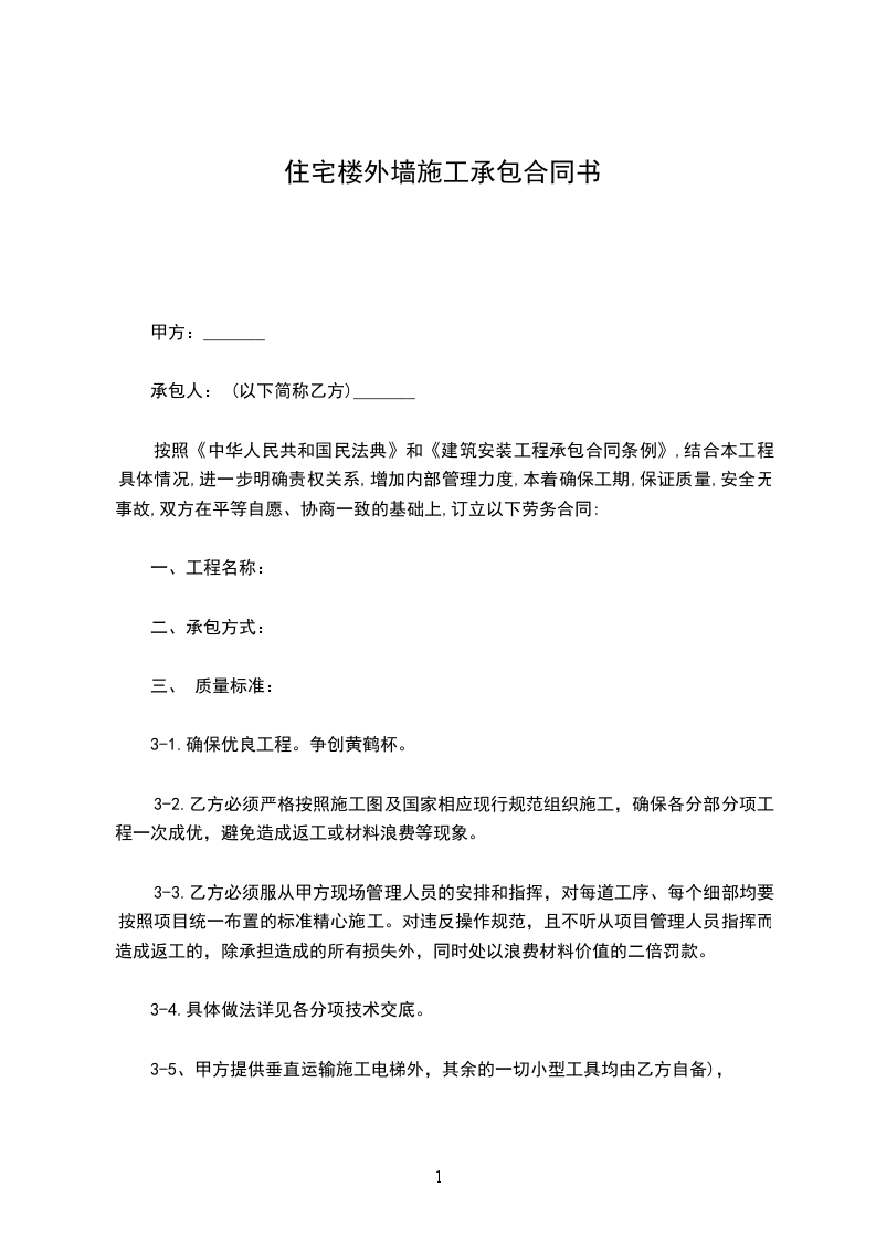 3-5、甲方提供垂直运输施工电梯外,其余的一切小型工具均由乙方自备),