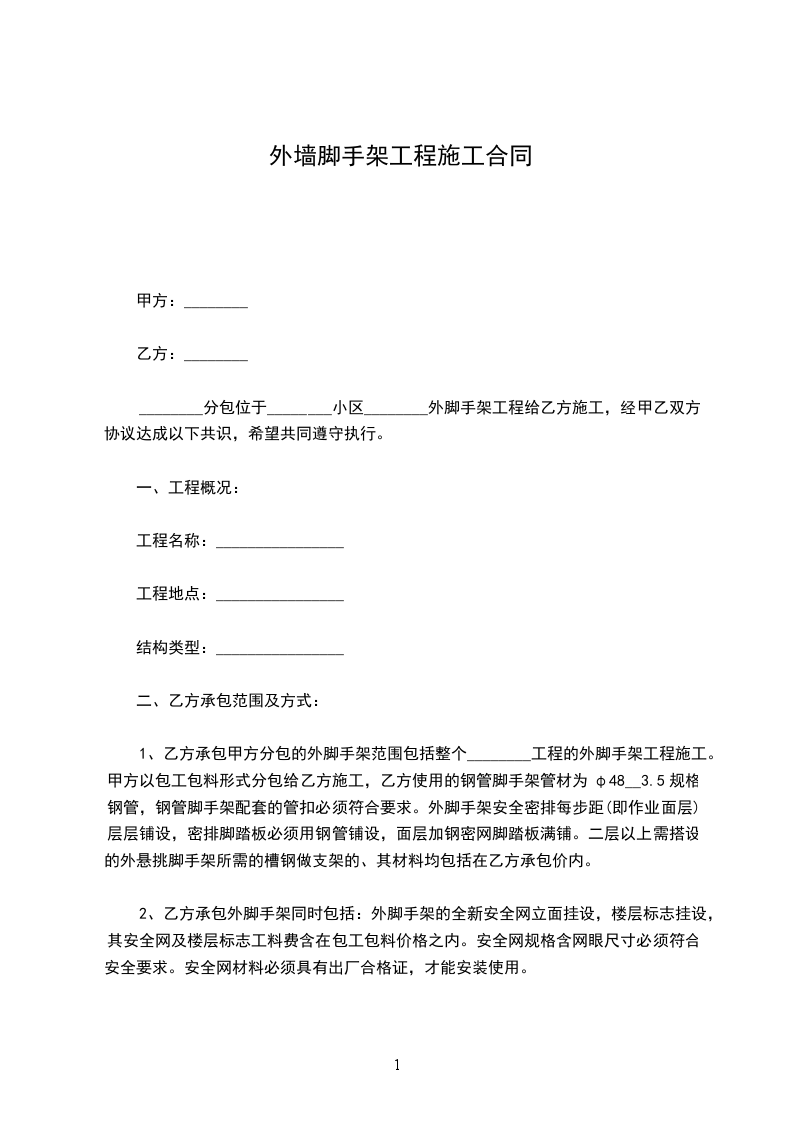 1. 甲方按乙方承包范围完成1~11项条款及工序:首层以上搭设钢管脚手架按搭设面积每平方米 计算给乙方。