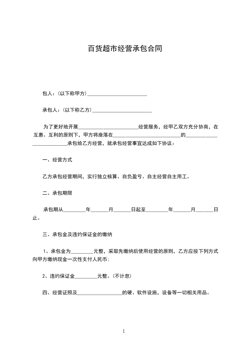 1、乙方应按约定及时足额缴纳经营承包金及违约保证金。