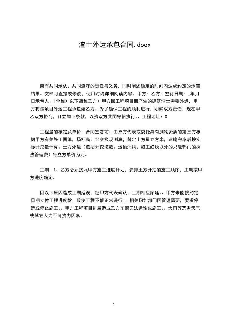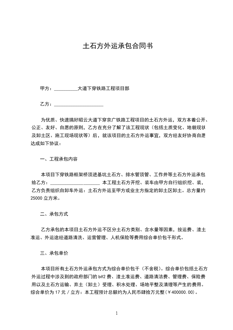 根据《中华人民共和国民法典》、《中华人民共和国建筑法》等规定,甲方把 场地内土方外运工程承包给乙方,经双方友好协商达成如下协议: