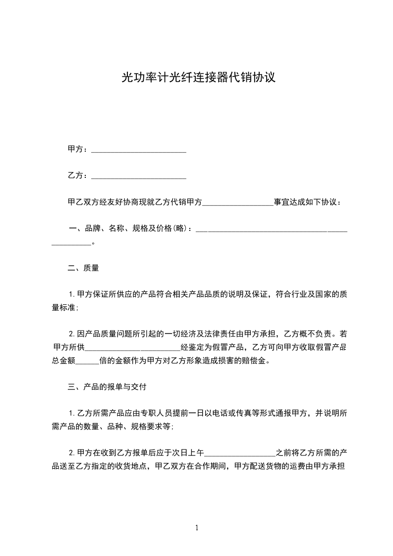 为拓展产品销售市场, (以下简称甲方)与(以下简称乙方),就乙方做为甲方大功率激光器成套设备代理商事宜,本着互惠互利原则,经友好协商达成如下协议: