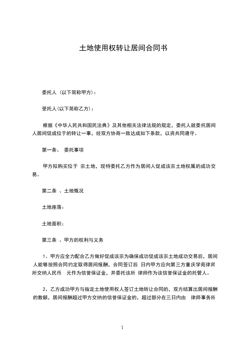1、乙方未促成甲方签订土地转让协议的,甲方不支付任何居间报酬,亦不承担乙方任何费用。
