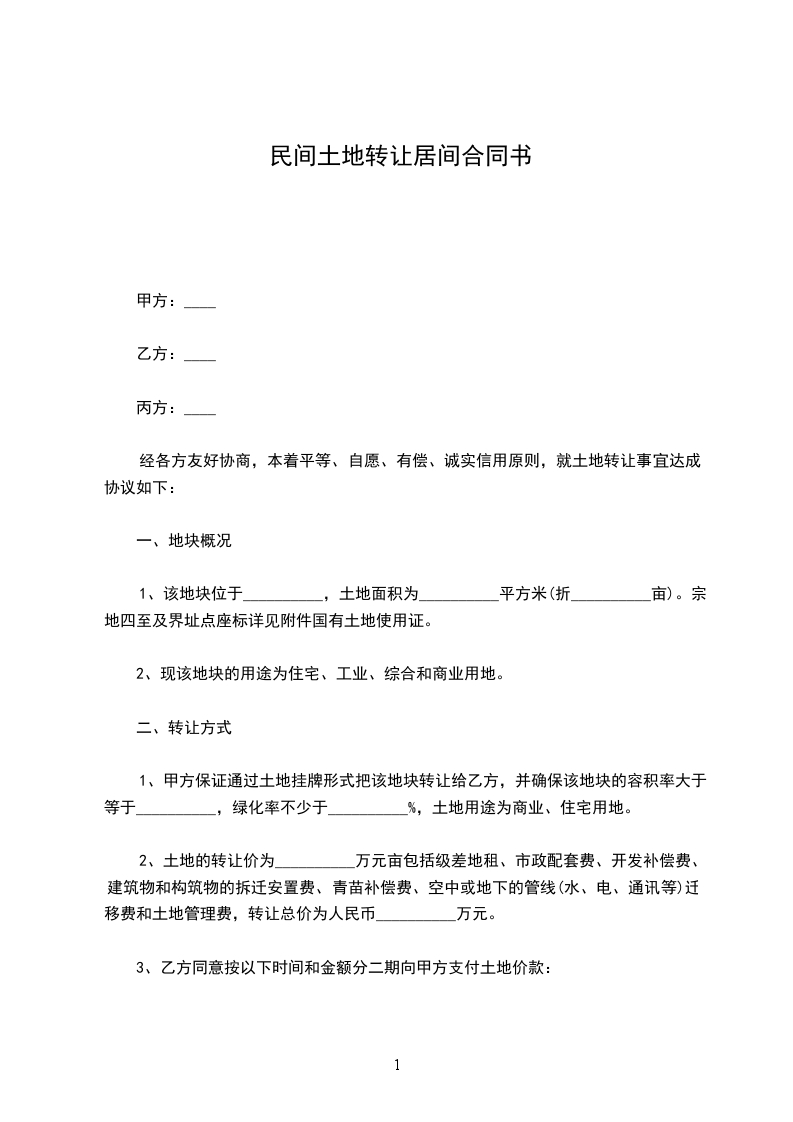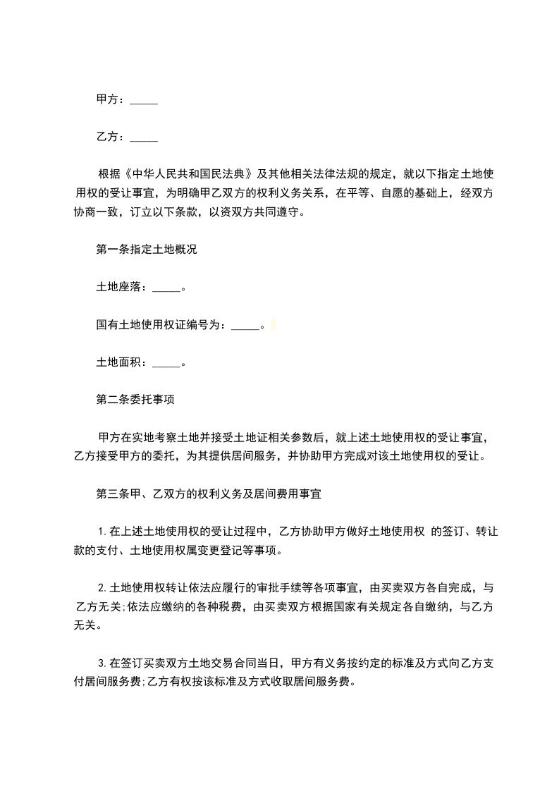 2.1乙方促成甲方与指定土地使用权人签订土地转让合同之日起三日内,甲方支付50%的居间报酬;
