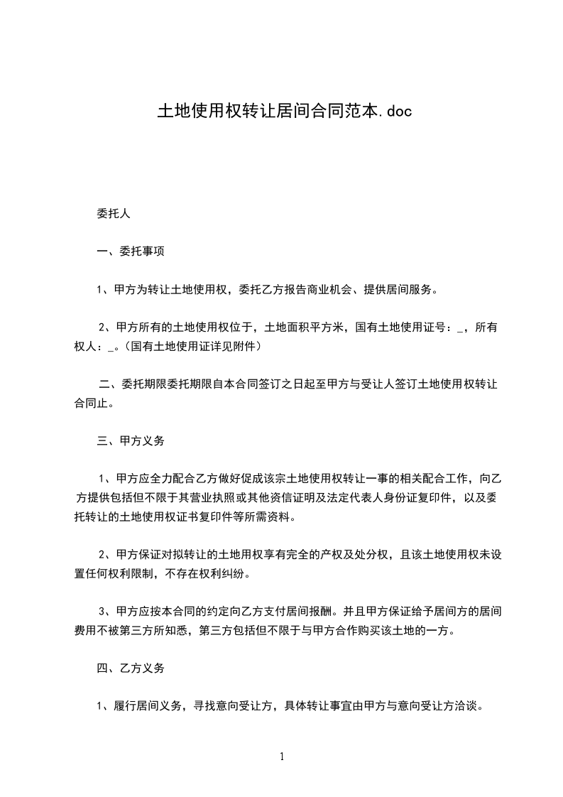 甲方拟购买位于 宗土地,现特委托乙方作为居间人促成该宗土地权属的成功交易。