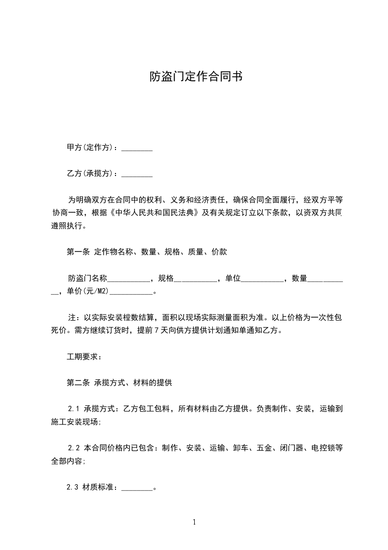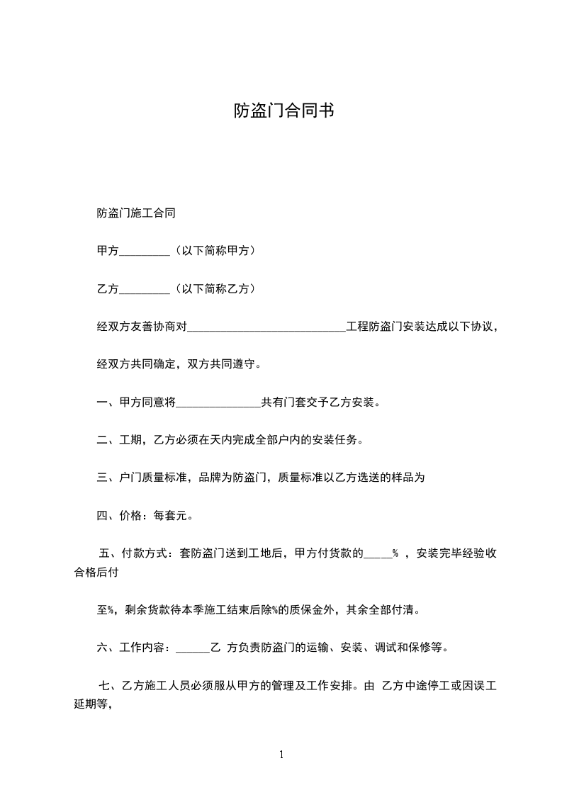 防盗门名称___________,规格___________,单位___________,数量___________,单价(元/M2)___________。