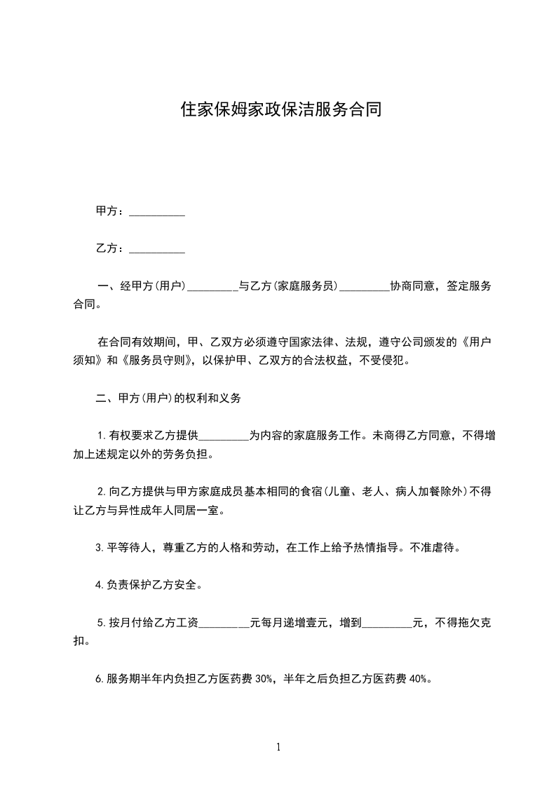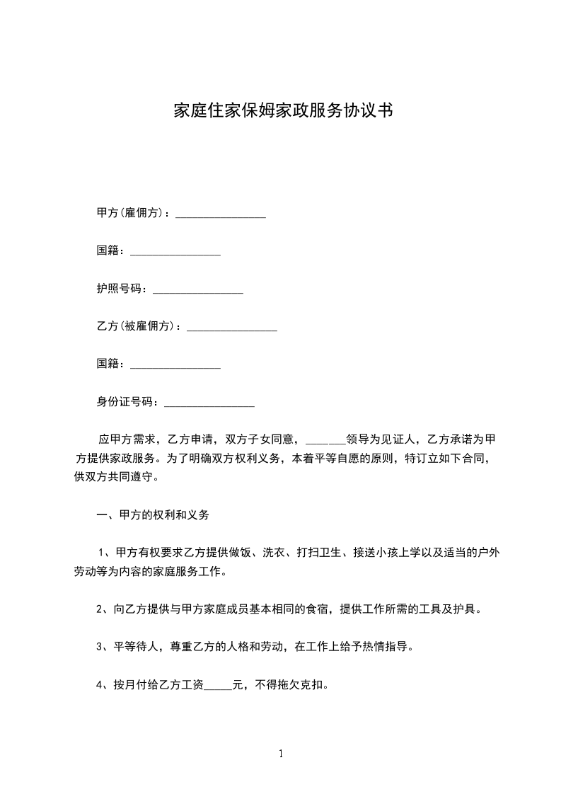 特聘请乙方到甲方家中做家政服务,经甲、乙方友好协商,为了明确双方权利义务,达成如下协议,供双方共同遵守: