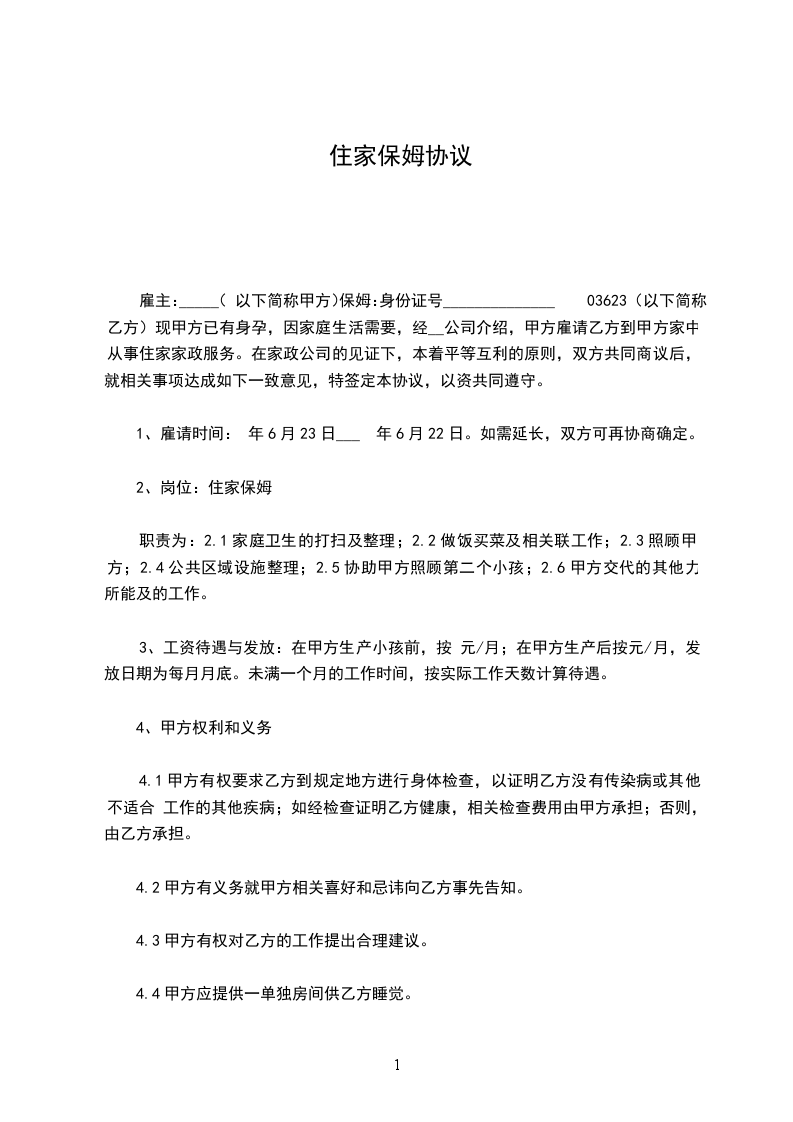 7、乙方承诺在甲方家工做期间不享受节假日,甲方以薪金方式补偿乙方补偿。