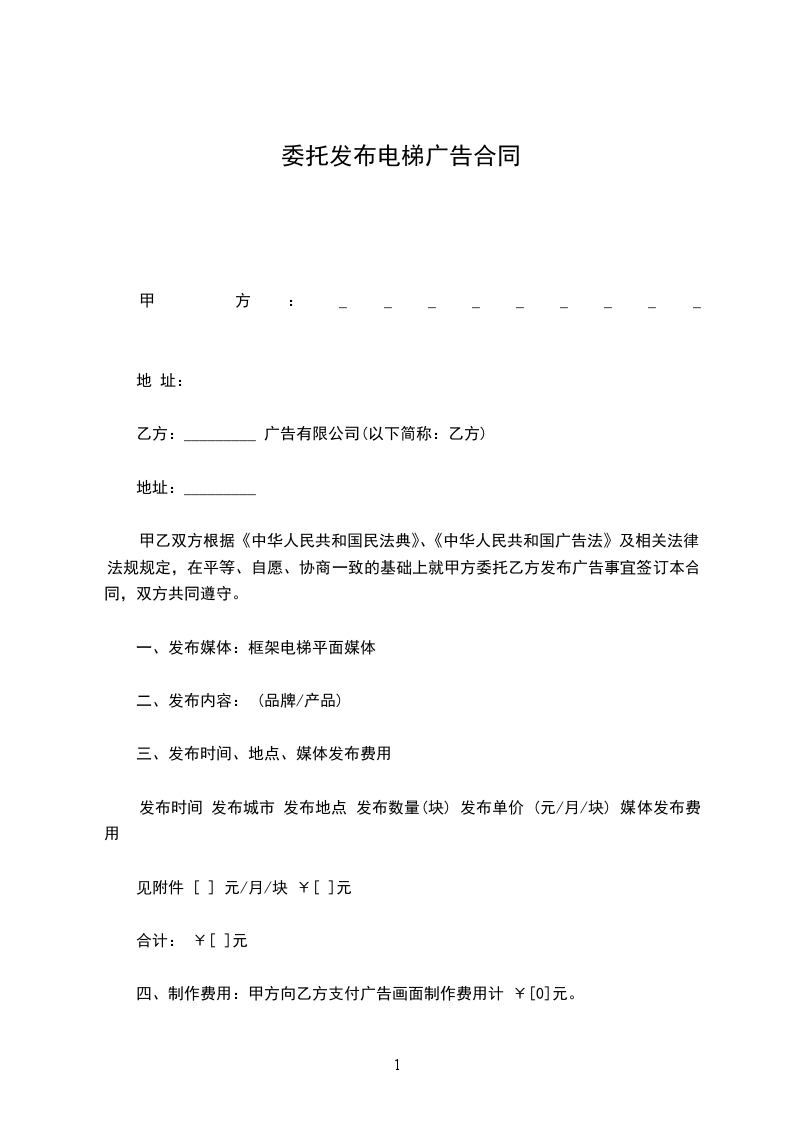 甲乙双方根据《中华人民共和国民法典》、《中华人民共和国广告法》及相关法律法规规定,在平等、自愿、协商一致的基础上就甲方委托乙方发布广告事宜签订本合同,双方共同遵守。