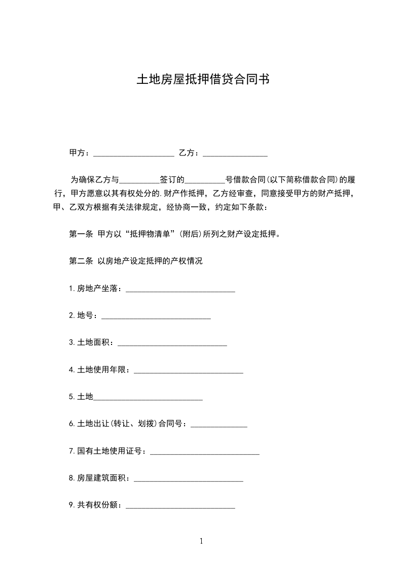 第一条 甲方以“抵押物清单”(附后)所列之财产设定抵押。