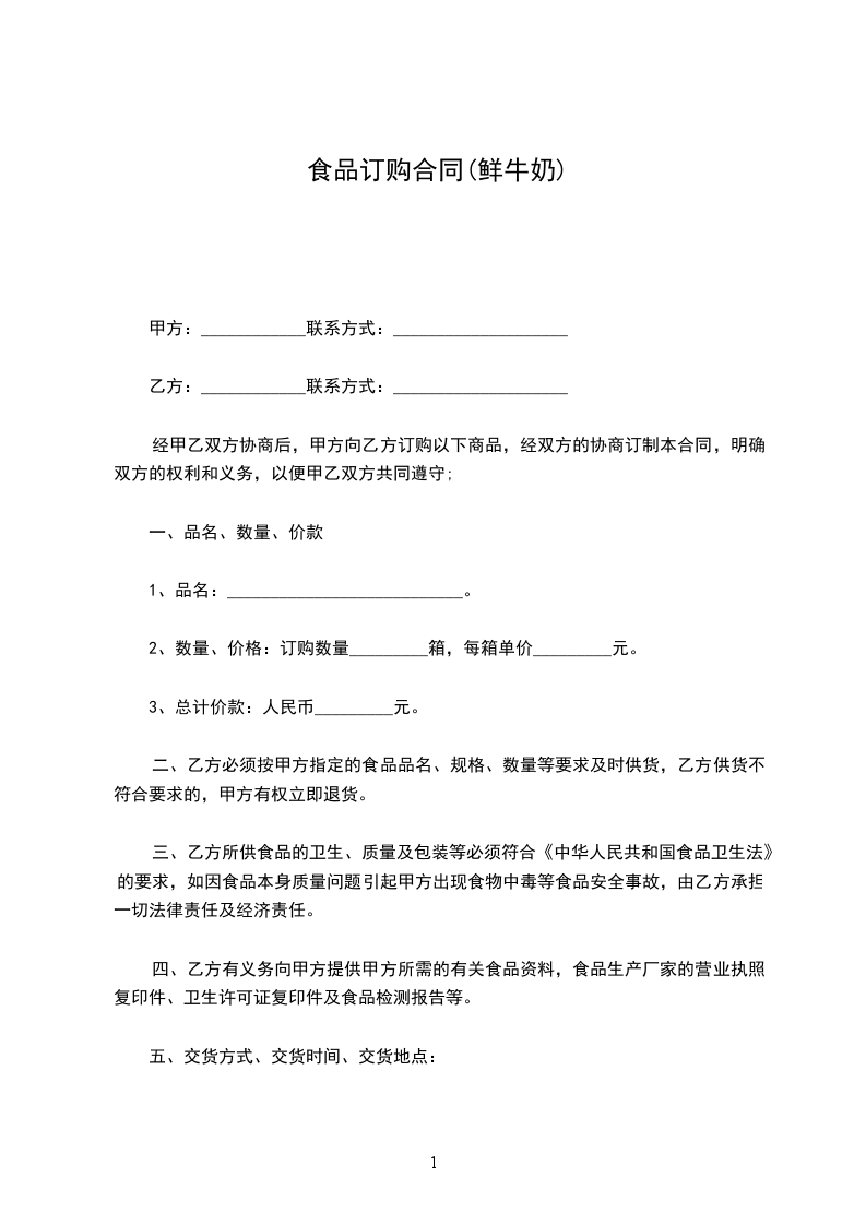 二、乙方必须按甲方指定的食品品名、规格、数量等要求及时供货,乙方供货不符合要求的,甲方有权立即退货。