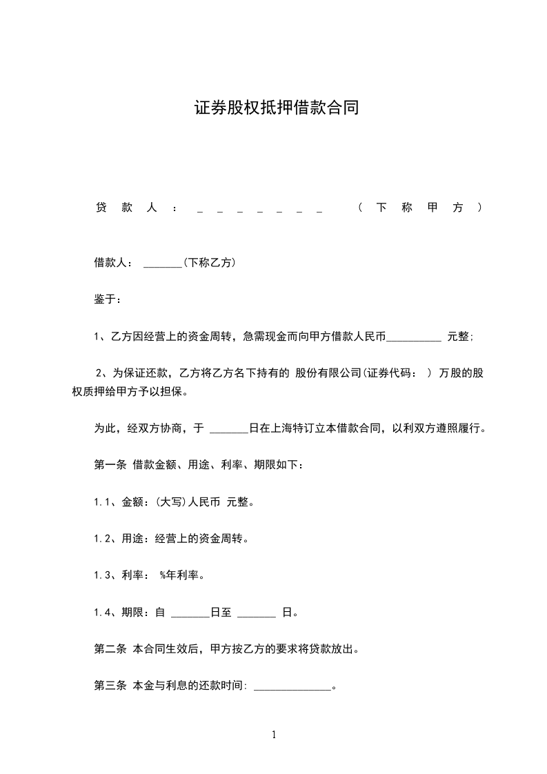10.2、双方约定:乙方违约、不履行或不完全履行还款义务,甲方可以不经诉讼程序,由甲方向公证处申请办理具有强制执行效力的公证文书,直接向有管辖权的人民法院申请强制执行乙方提供的质押物,即《抵押合同》中提供的____________________(证券代码:______________)_________万股股权,乙方自愿接受该强制执行。执行标的包括但不限于贷款本金、利息、违约金、申请执行费用等。
