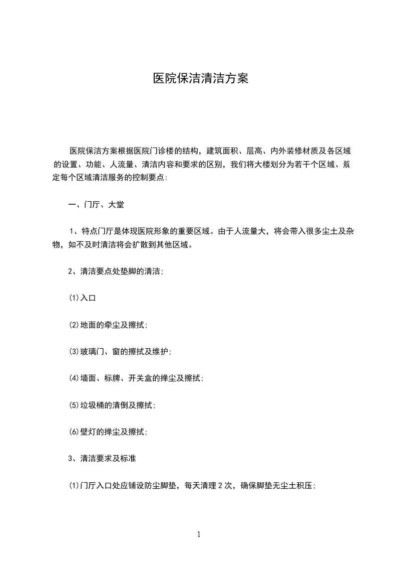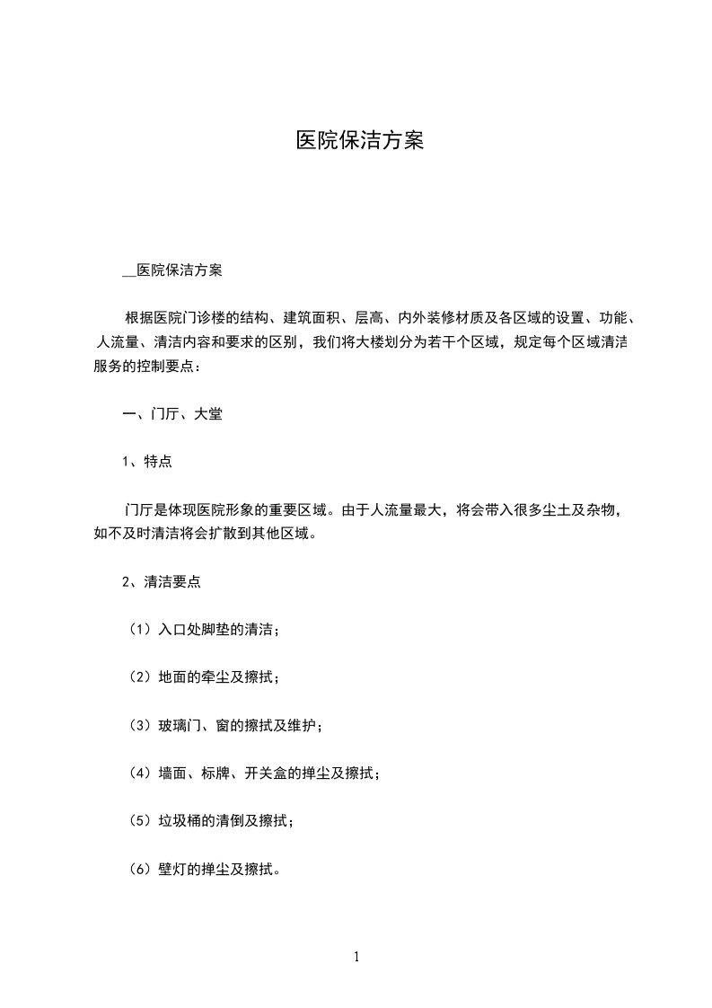 服务内容:对医院内部所有公共区域进行卫生保洁。