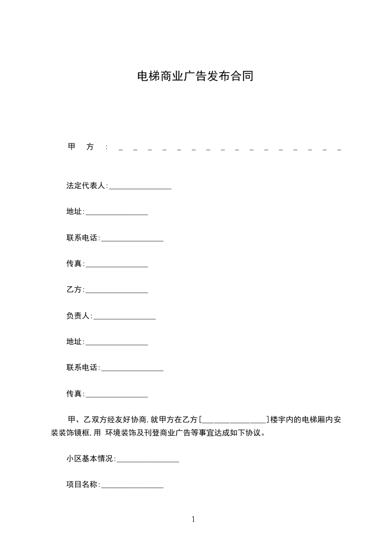 3、本合同到期,甲、乙双方的合作终止后,乙方不得继续使用电梯区域相关资源,并应将所安装广告设备自行撤除。