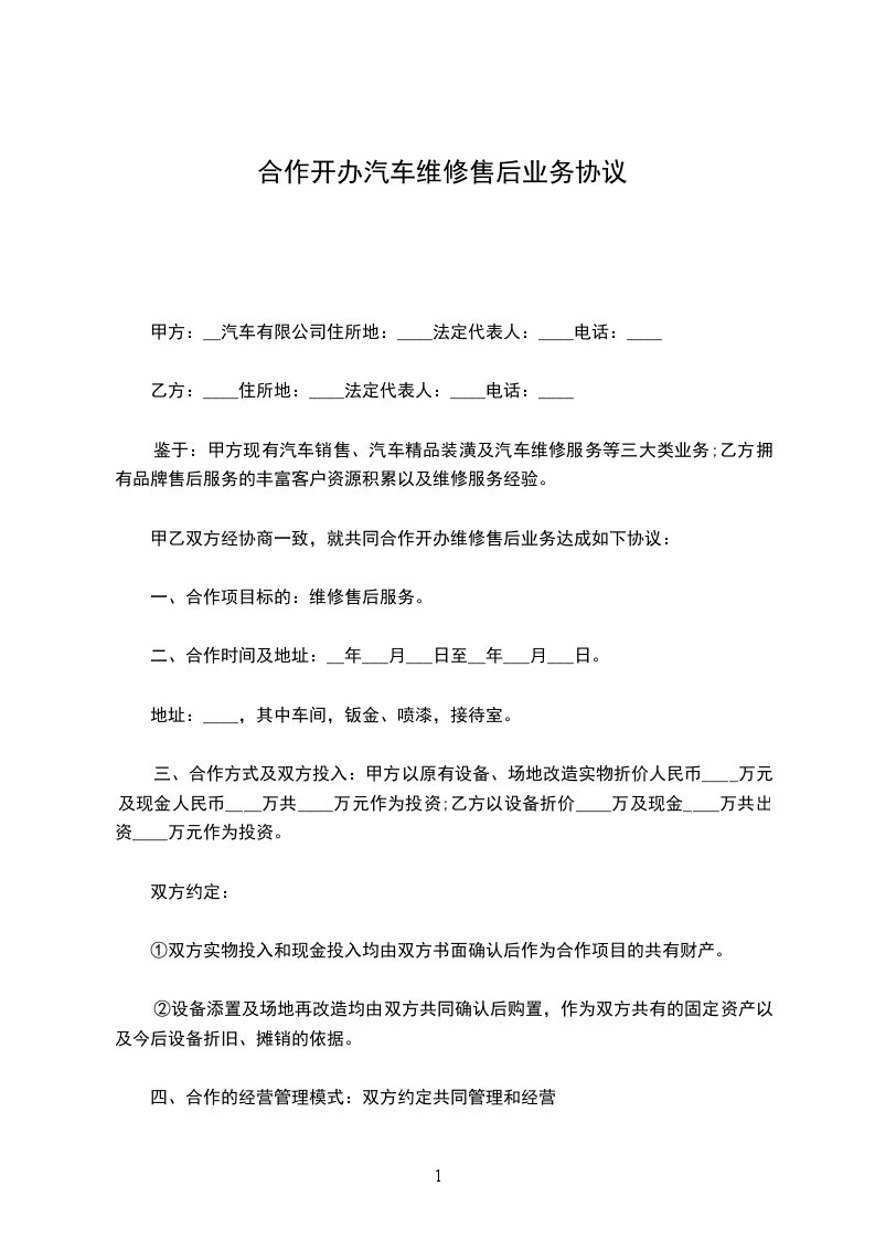 甲乙双方根据《民法典》及有关规定,本着平等互利、真诚合作、共同发展的原则,为共同开拓市场,做好________牌产品的售后服务工作,乙方在经销甲方产品的同时承担售后服务工作。经双方协商,就________牌产品在乙方经销区域内的售后服务达成以下协议: