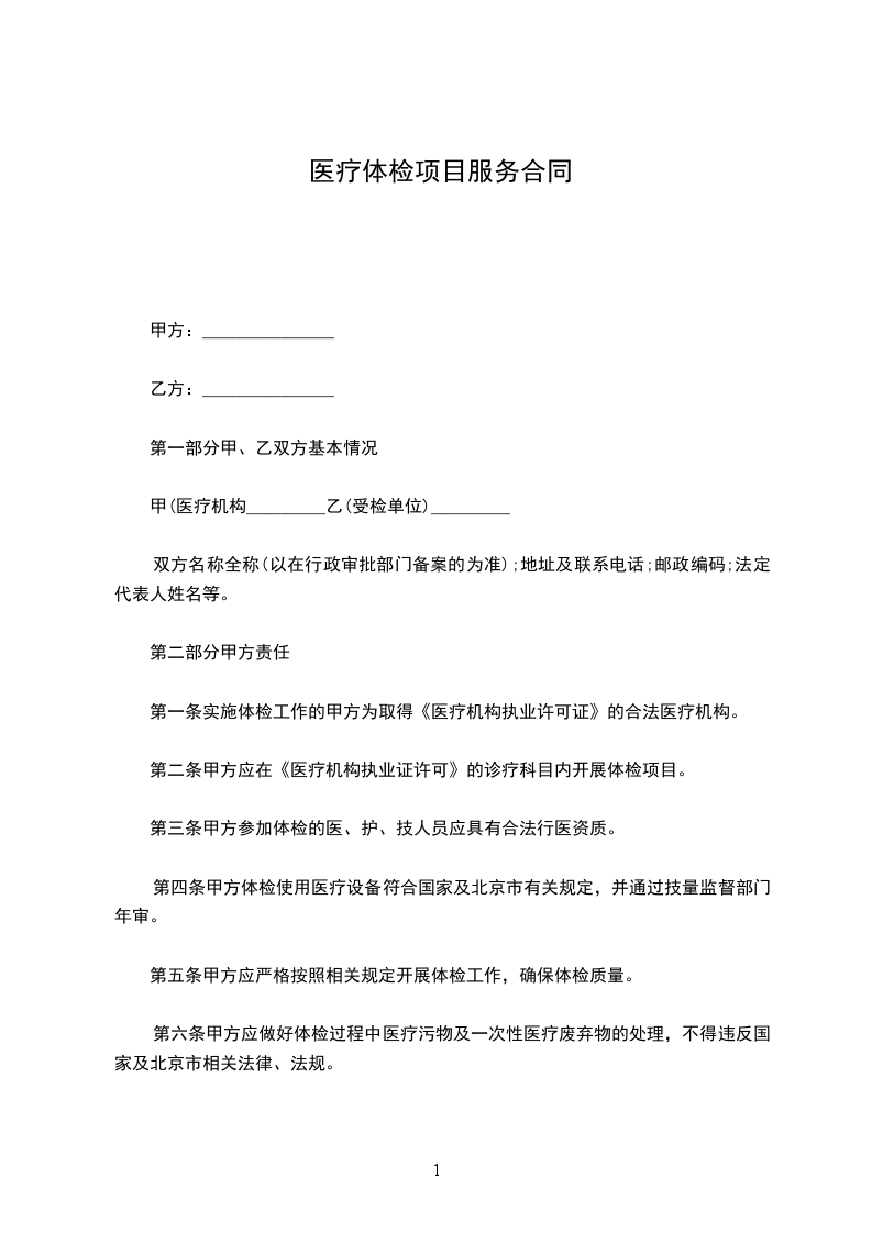 第一条实施体检工作的甲方为取得《医疗机构执业许可证》的合法医疗机构。