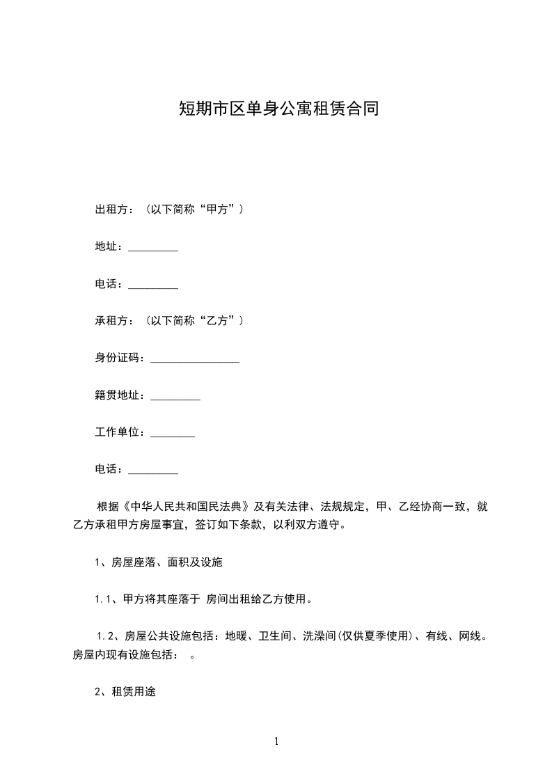 出租方: (以下简称“甲方”)