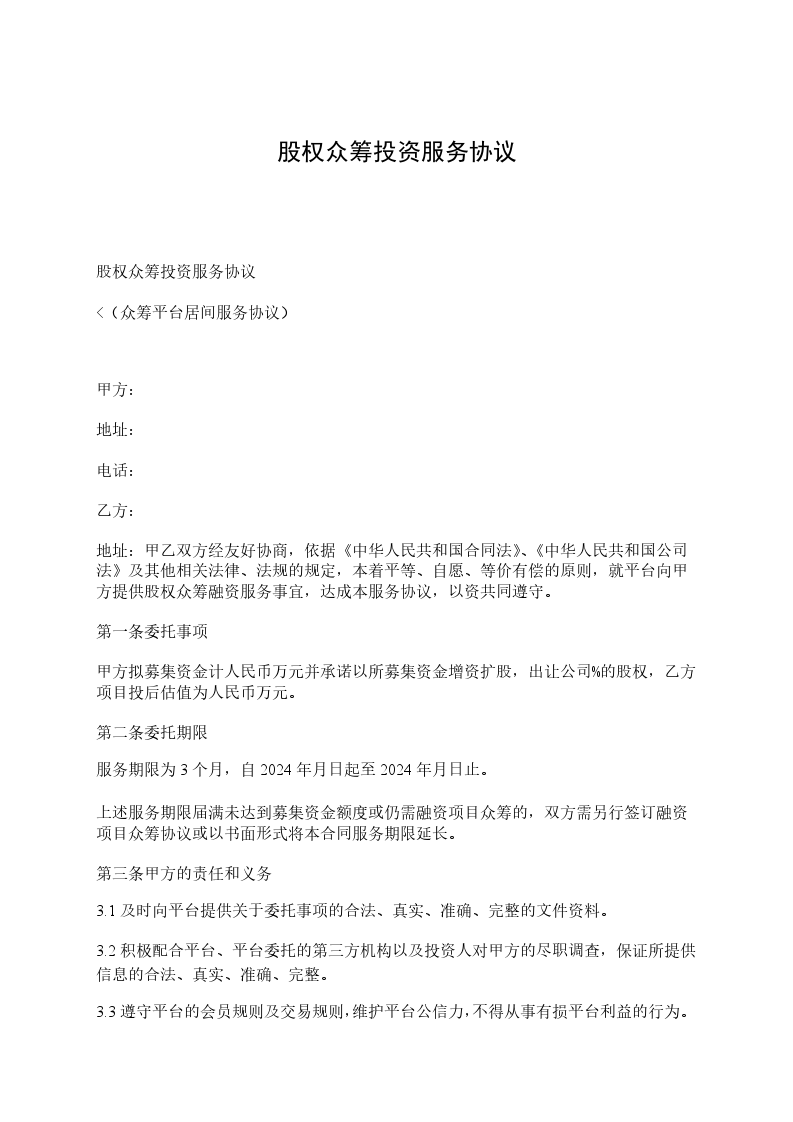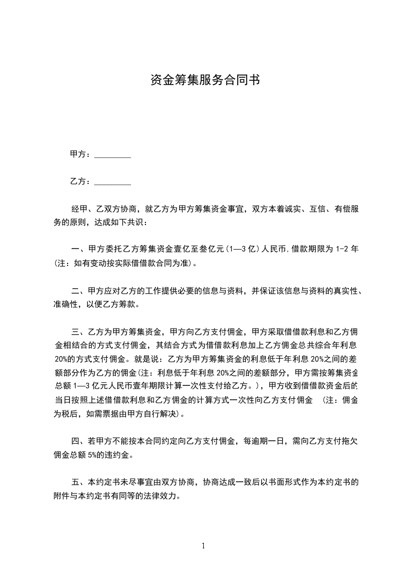 经甲、乙双方协商,就乙方为甲方筹集资金事宜,双方本着诚实、互信、有偿服务的原则,达成如下共识: