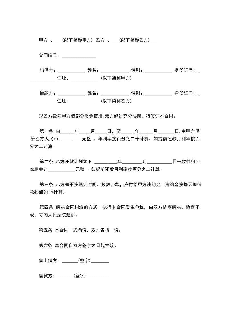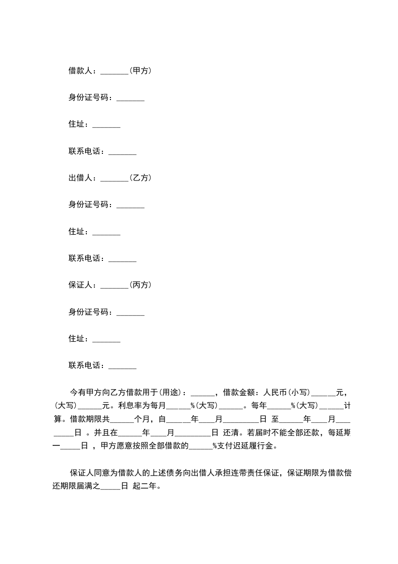 1、借款时间共_____个月 ,自_______年______月______日至_______年______月______日止。