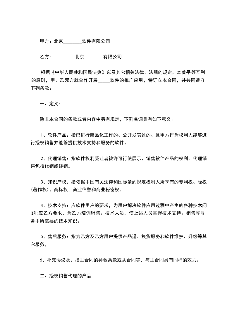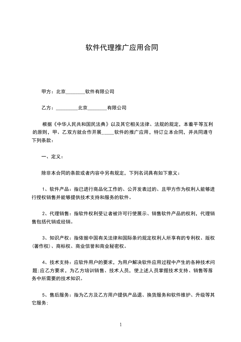 根据《中华人民共和国民法典》以及其它相关法律、法规的规定,本着平等互利的原则,甲、乙双方就合作开展_____软件的推广应用,特订立本合同,并共同遵守下列条款: