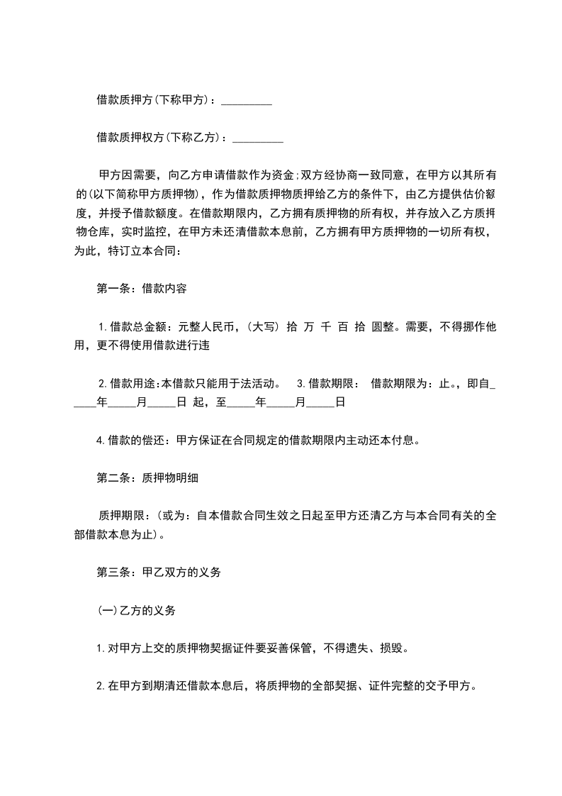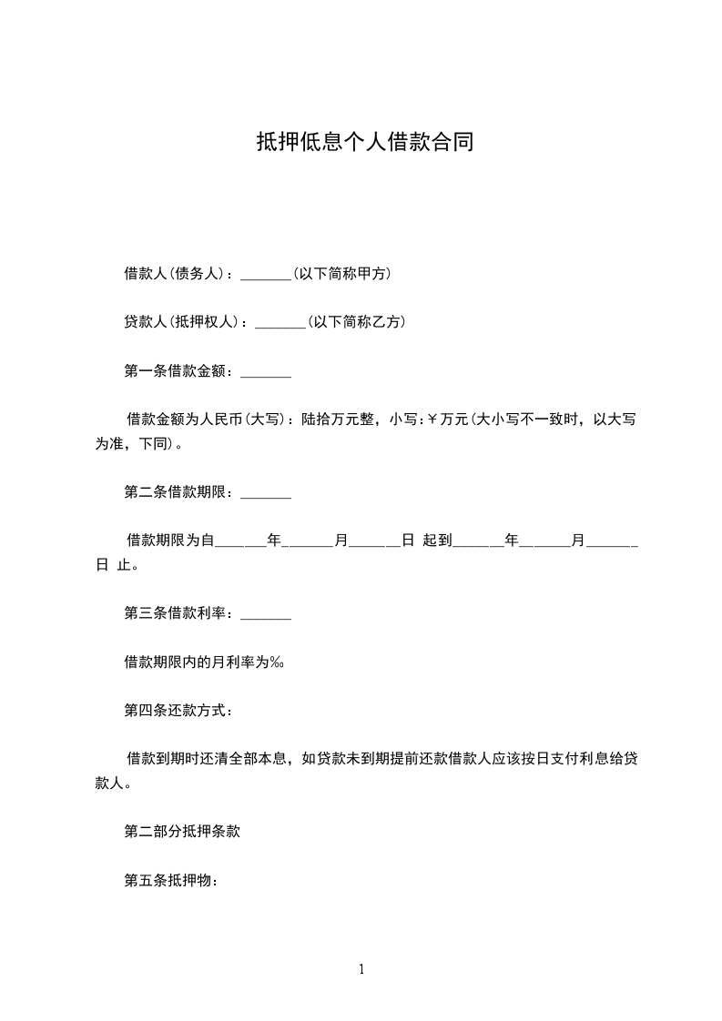 第二条贷款人同意贷给借款人个人住房贷款,金额为人民币(大写)_________,本项贷款用于_________,贷款利率为月利率_________‰(如遇国家利率调整或借款人未按时向贷款人付息时,按中国人民银行有关规定。办—理。)借款期限由_________年_________月_________日起至_________年_________月_________日止。