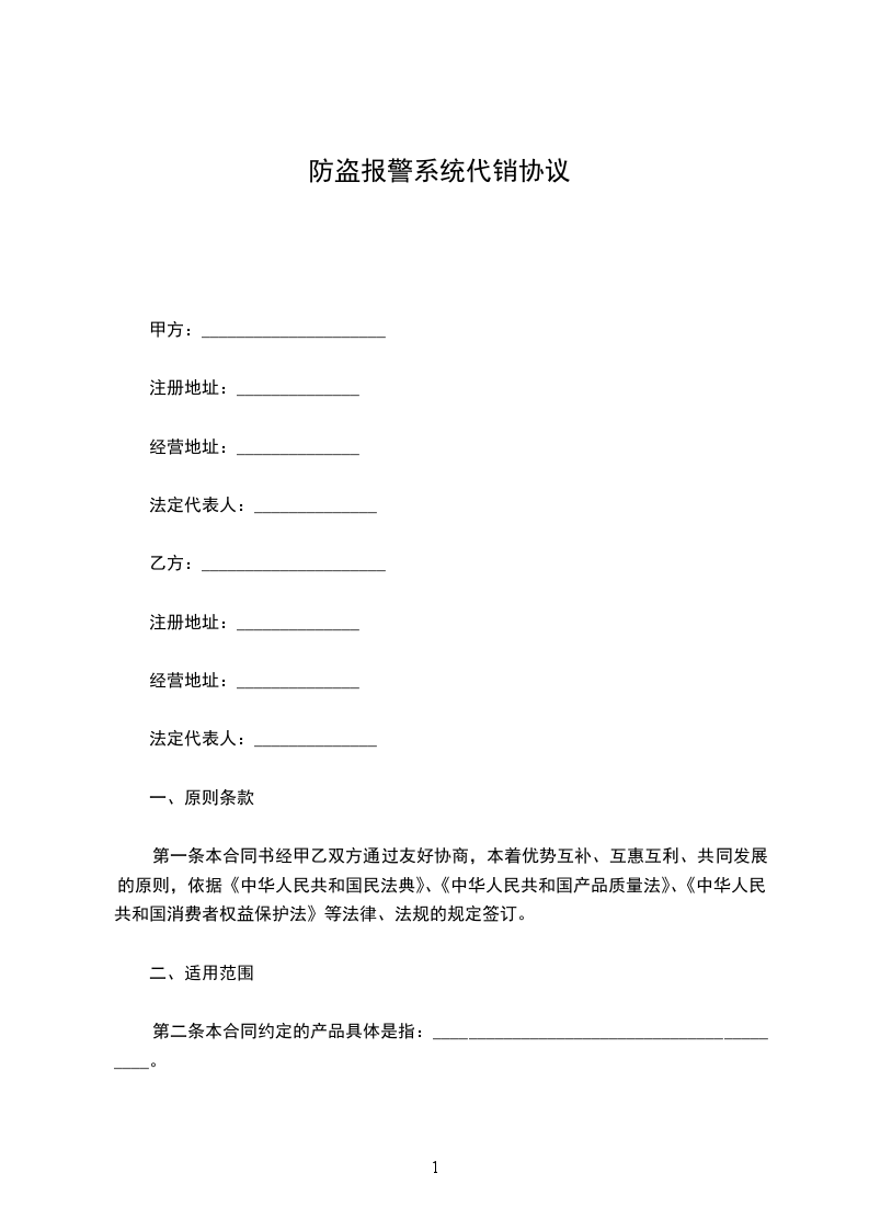 根据《中华人民共和国民法典》及有关法律规定,为促进甲乙双方的商务合作,在平等自愿、互惠互利的基础上,就甲方授权乙方代理销售甲方生产的系列安防产品为区域总代理商事宜,现达成如下协议,双方必须共同遵守。