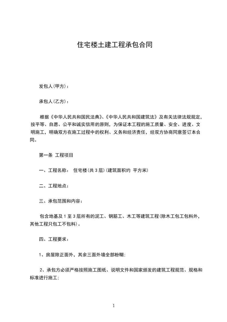 一、工程名称: 住宅楼(共3层)(建筑面积约 平方米)