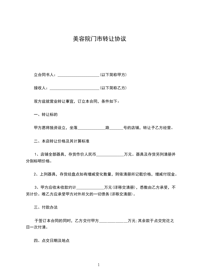 双方兹就营业转让事宜,订立本合同,条件如下: