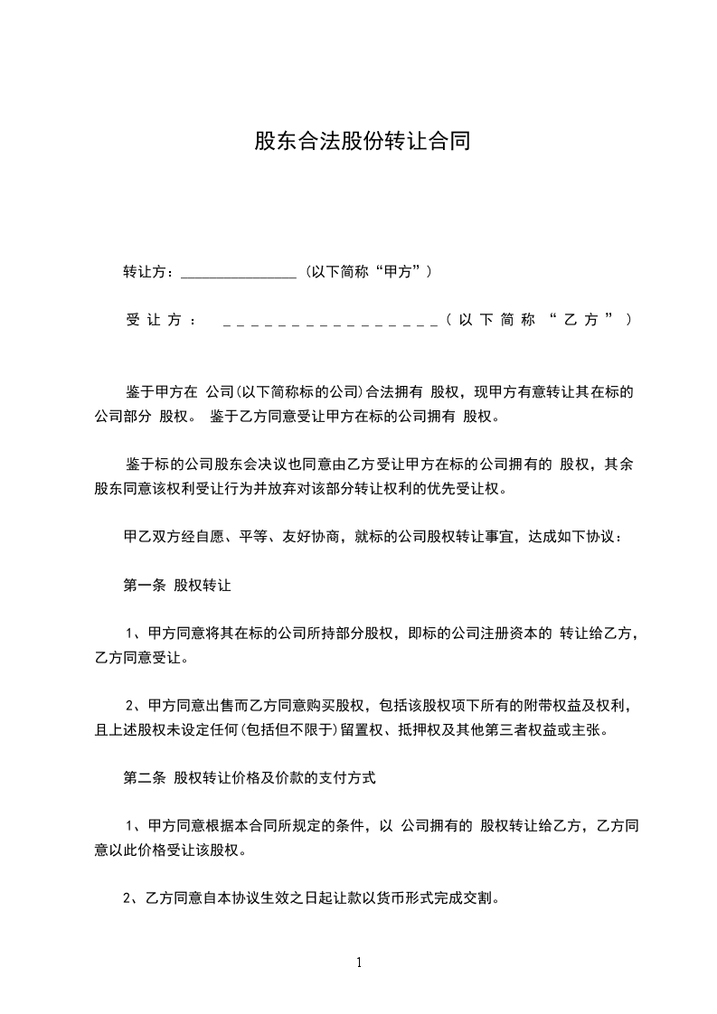 1、甲方同意根据本合同所规定的条件,以 公司拥有的 股权转让给乙方,乙方同意以此价格受让该股权。