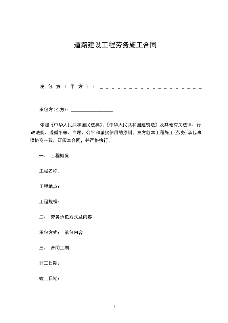 依照《中华人民共和国民法典》、《中华人民共和国建筑法》及其他有关法律、行政法规、遵循平等、自愿、公平和诚实信用的原则,双方就本工程施工(劳务)承包事项协商一致,订阅本合同,并严格执行。