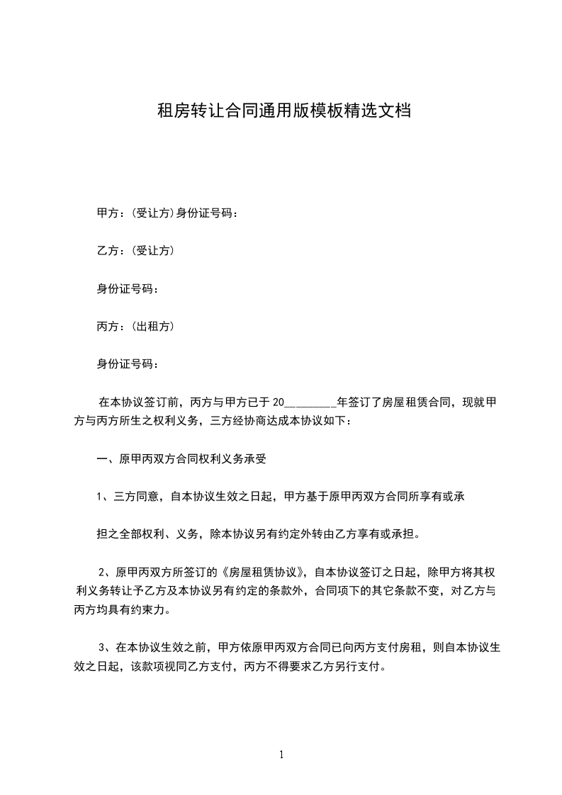 1.本转租房屋系供居住之用。