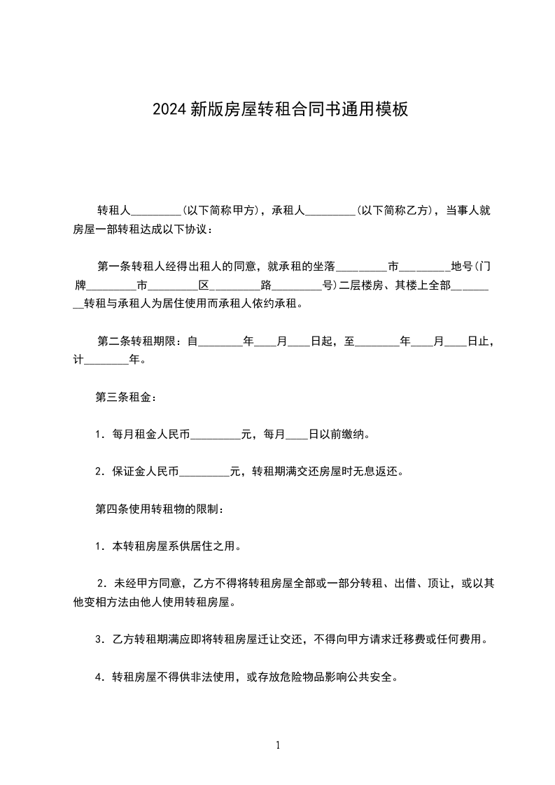 4.转租房屋不得供非法使用;或存放危险物品影响公共安全。