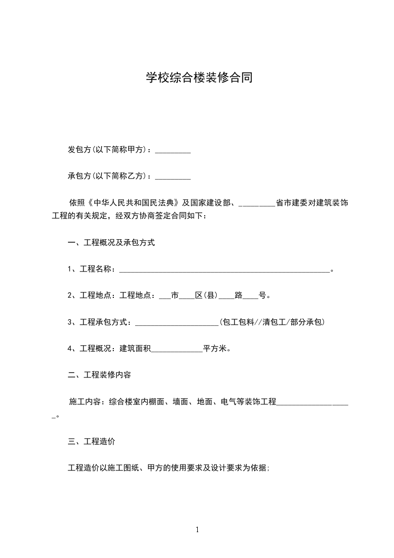 依照《中华人民共和国民法典》及国家建设部、_________省市建委对建筑装饰工程的有关规定,经双方协商签定合同如下:
