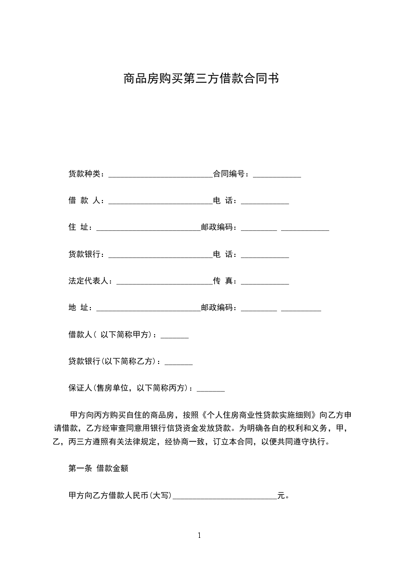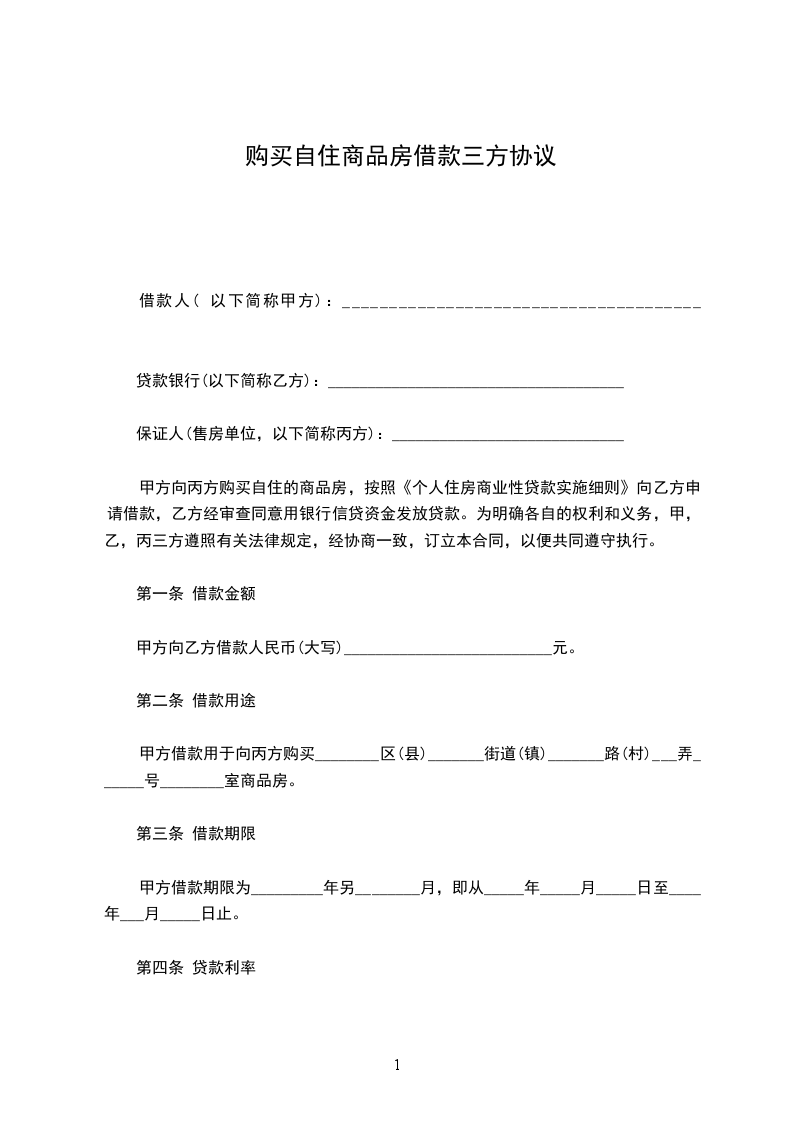 甲方向丙方购买自住的商品房,按照《个人住房商业性贷款实施细则》向乙方申请借款,乙方经审查同意用银行信贷资金发放贷款。为明确各自的权利和义务,甲,乙,丙三方遵照有关法律规定,经协商一致,订立本合同,以便共同遵守执行。