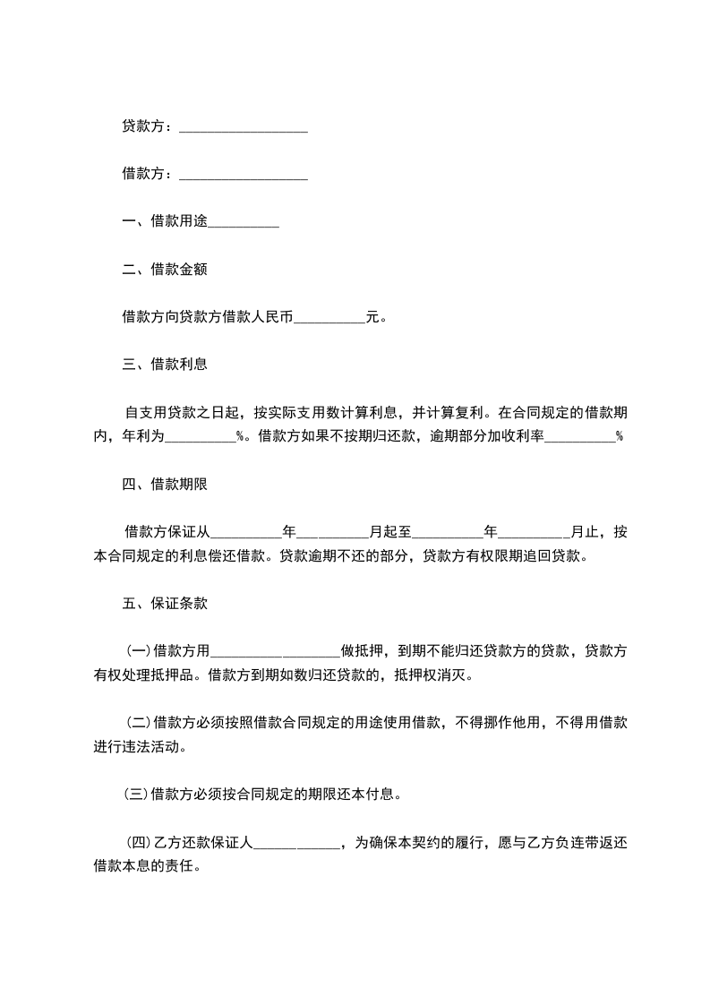 借款人( 以下简称甲方):______________________________________