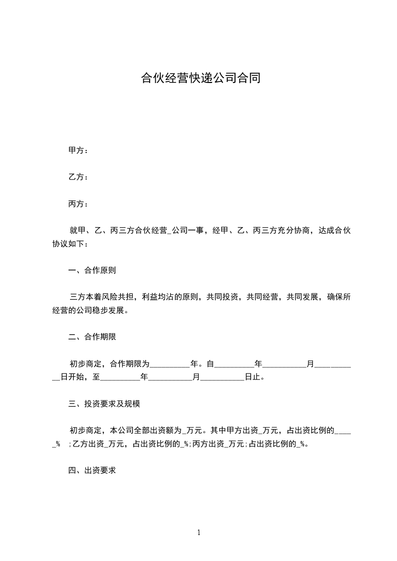 现有甲、乙、丙、丁四方合股(合伙)开办一家____________,全面实施四方共同投资、共同合作经营的决策,成立股份制公司。经四方合伙人平等协商,本着互利合作的`原则,签订本协议,以供信守。