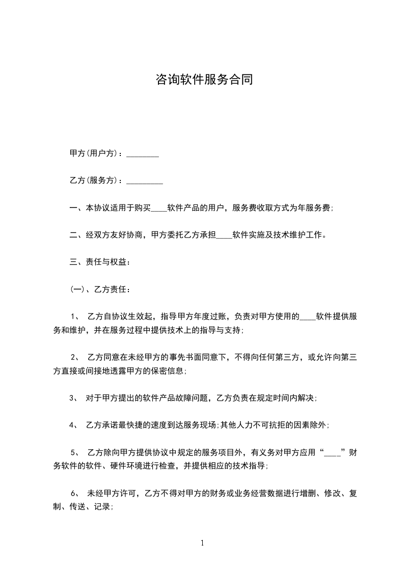 1、 乙方自协议生效起,指导甲方年度过账,负责对甲方使用的____软件提供服务和维护,并在服务过程中提供技术上的指导与支持;
