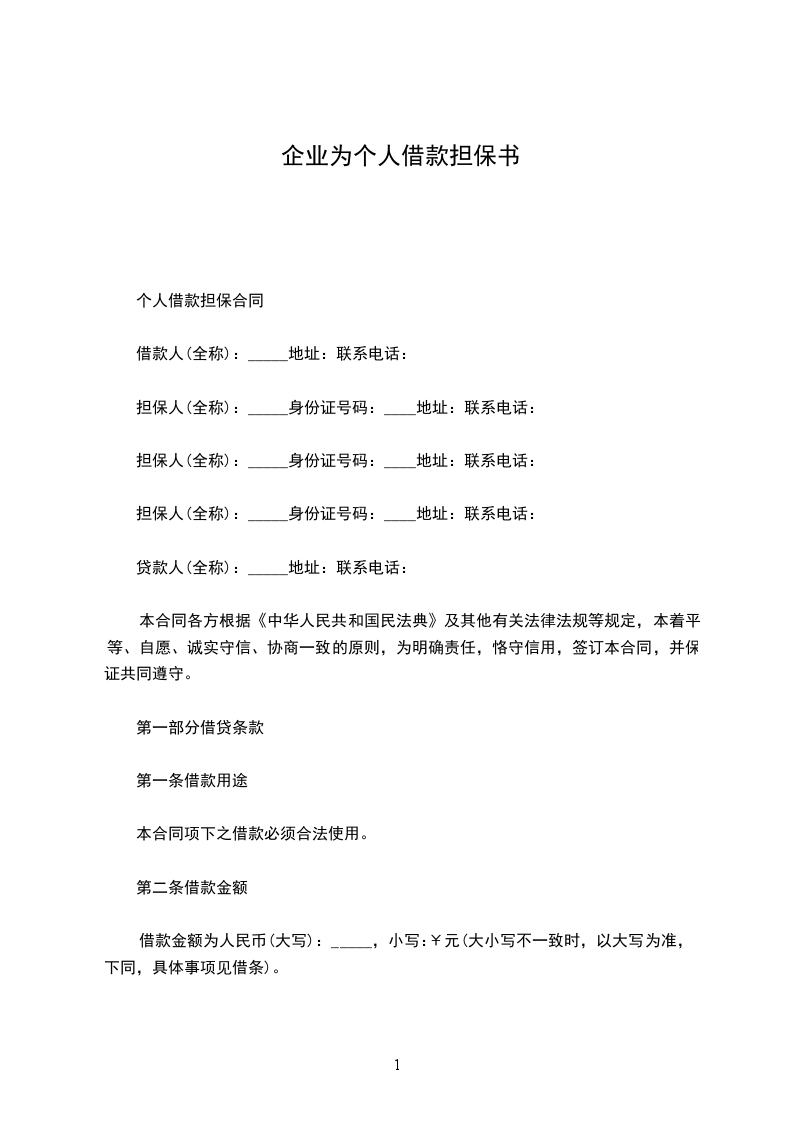 第一条 甲方保证担保的贷款金额(大写)________________,贷款期限自______年_____月_____日至______年_____月_____日