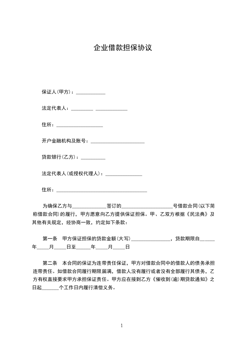 为确保乙方与______________签订的_____________________号借款合同(以下简称借款合同)的履行,甲方愿意向乙方提供保证担保。甲、乙双方根据《民法典》及其他有关规定,经协商一致,约定如下条款: