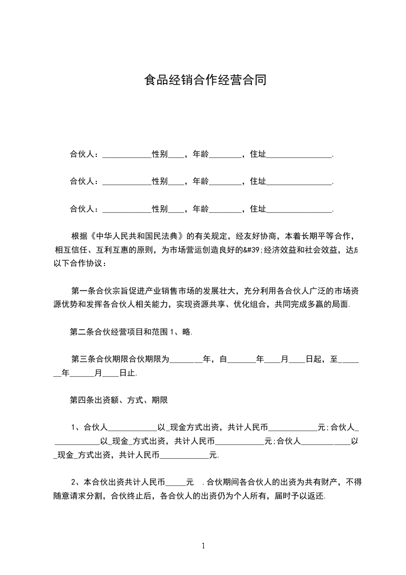 2、本合伙出资共计人民币_____元 .合伙期间各合伙人的出资为共有财产,不得随意请求分割,合伙终止后,各合伙人的出资仍为个人所有,届时予以返还.