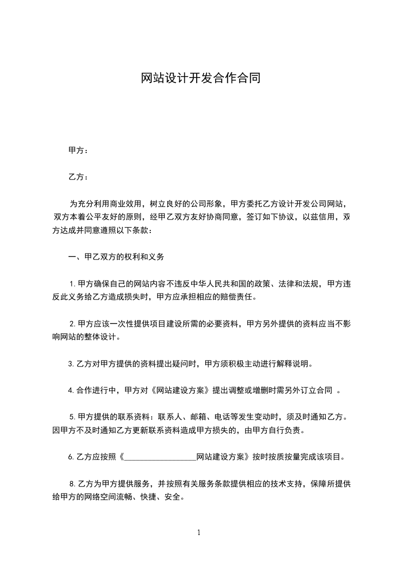1-2 为了更好的开发站点,甲方应配合乙方的调查工作;