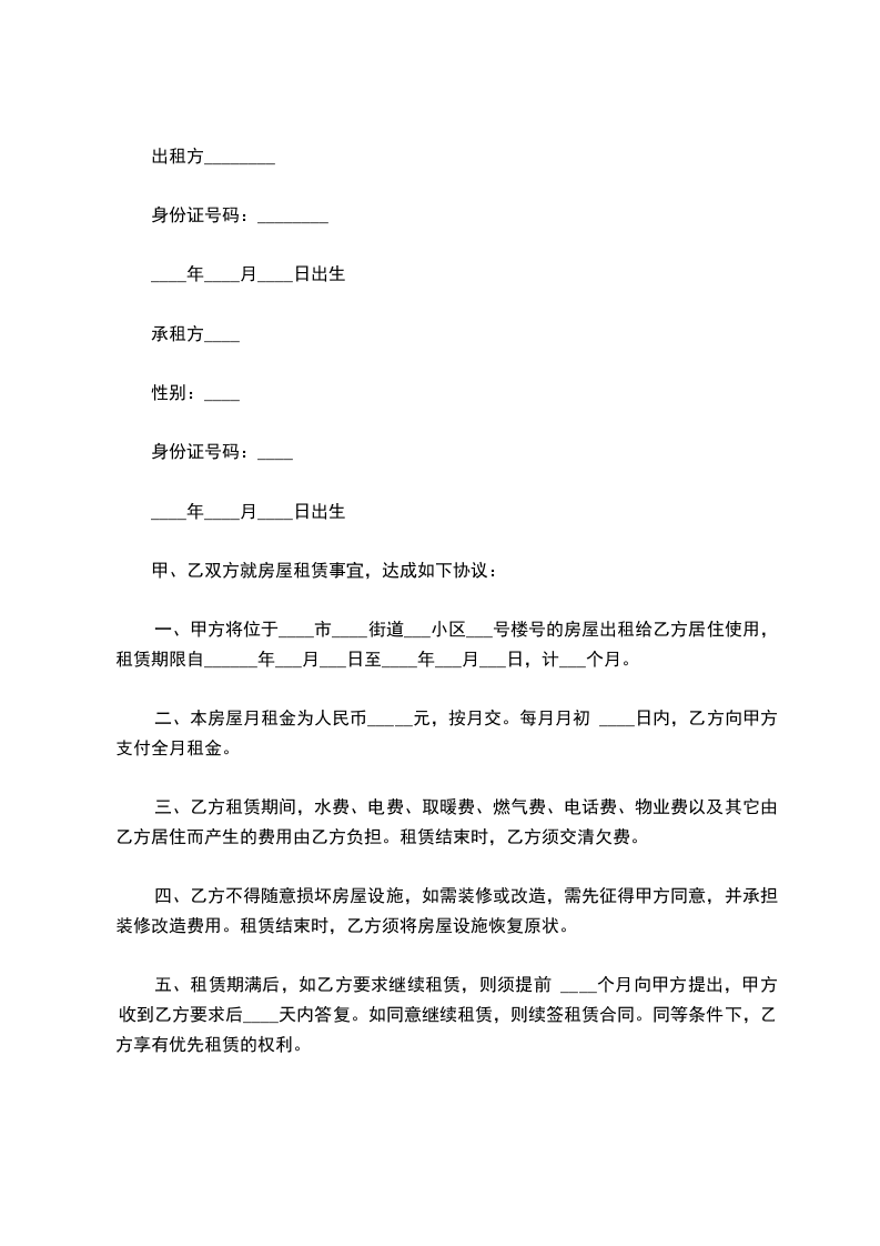 租赁期限届满前___天,如乙方需要继续承租,需要向甲方提供提出,由甲方决定是否继续续签合同。