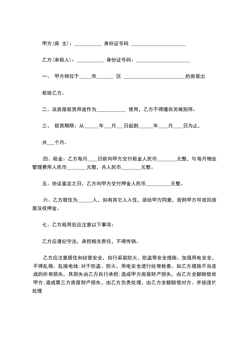 1、本合同所出租房屋坐落在___市___区______号。(该房屋租赁合同和协议不足部分可以补充)