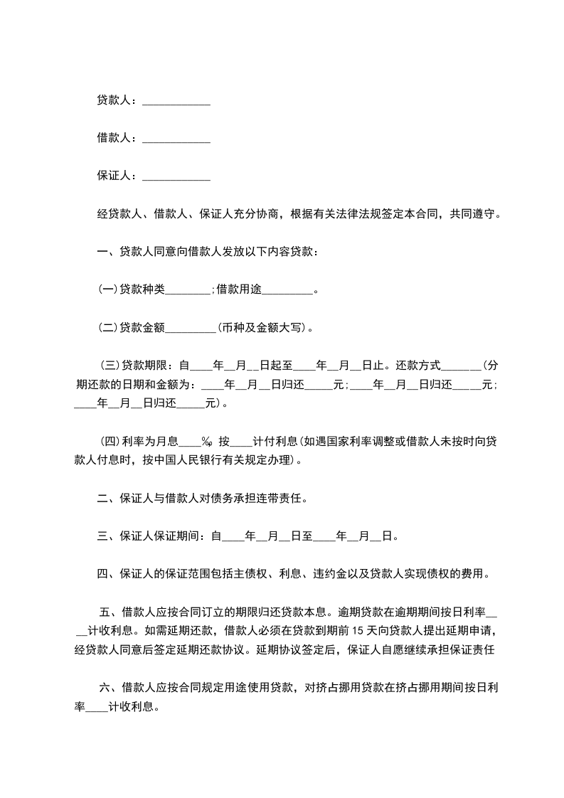 十二、本合同一式_____份,借、贷、保证人各持一份。本合同自各方签章之日生效。